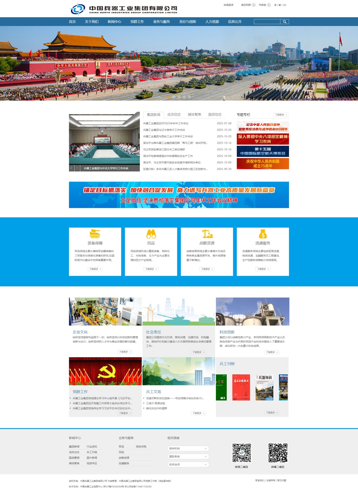兵器工业集团作为党执政兴国的重要依靠力量,是国家战略科技力量的重要组成部分,是国家安全和国防建设的主力军。
